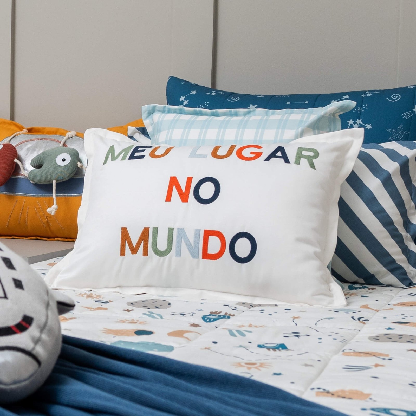 Quando você vê um quarto de bebê impecável, pode notar, são os detalhes que o tornam único. Mães que buscam esse nível de elegância sabem que uma almofada decorativa de design exclusivo é indispensável. A Almofada Bordada Meu Lugar No Mundo da coleção Space é essa peça. Seu valor está na capacidade de adicionar textura, cor e afeto, criando aquele cenário acolhedor e sofisticado que todo mundo admira.