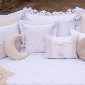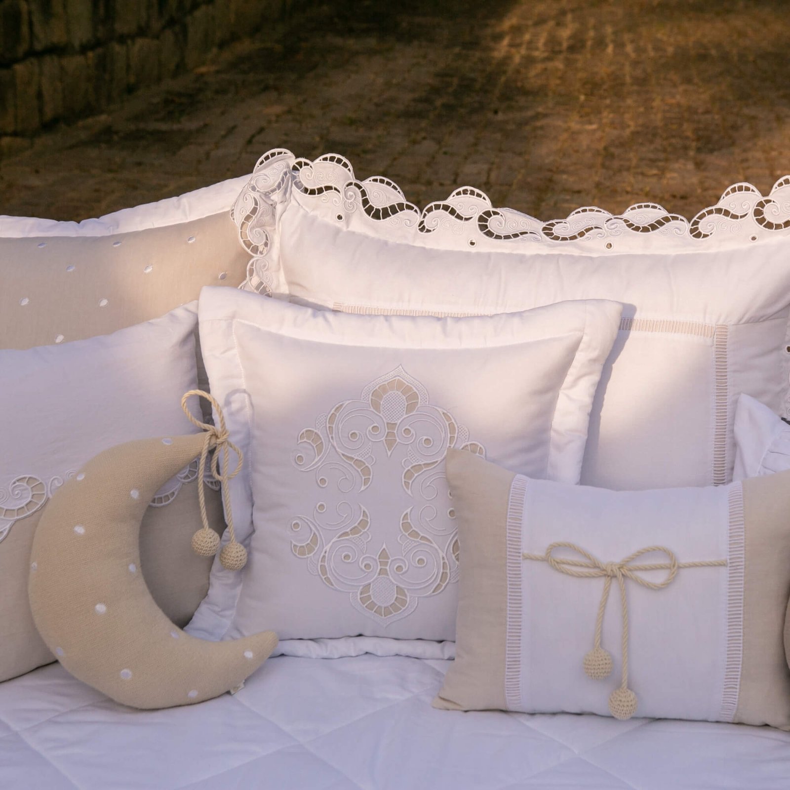 Quando você vê um quarto de bebê impecável, pode notar, são os detalhes que o tornam único. Mães que buscam esse nível de elegância sabem que uma almofada decorativa de design exclusivo é indispensável. A Almofada Bordada Richelieu com Borda da coleção Noah é essa peça. Seu valor está na capacidade de adicionar textura, cor e afeto, criando aquele cenário acolhedor e sofisticado que todo mundo admira.