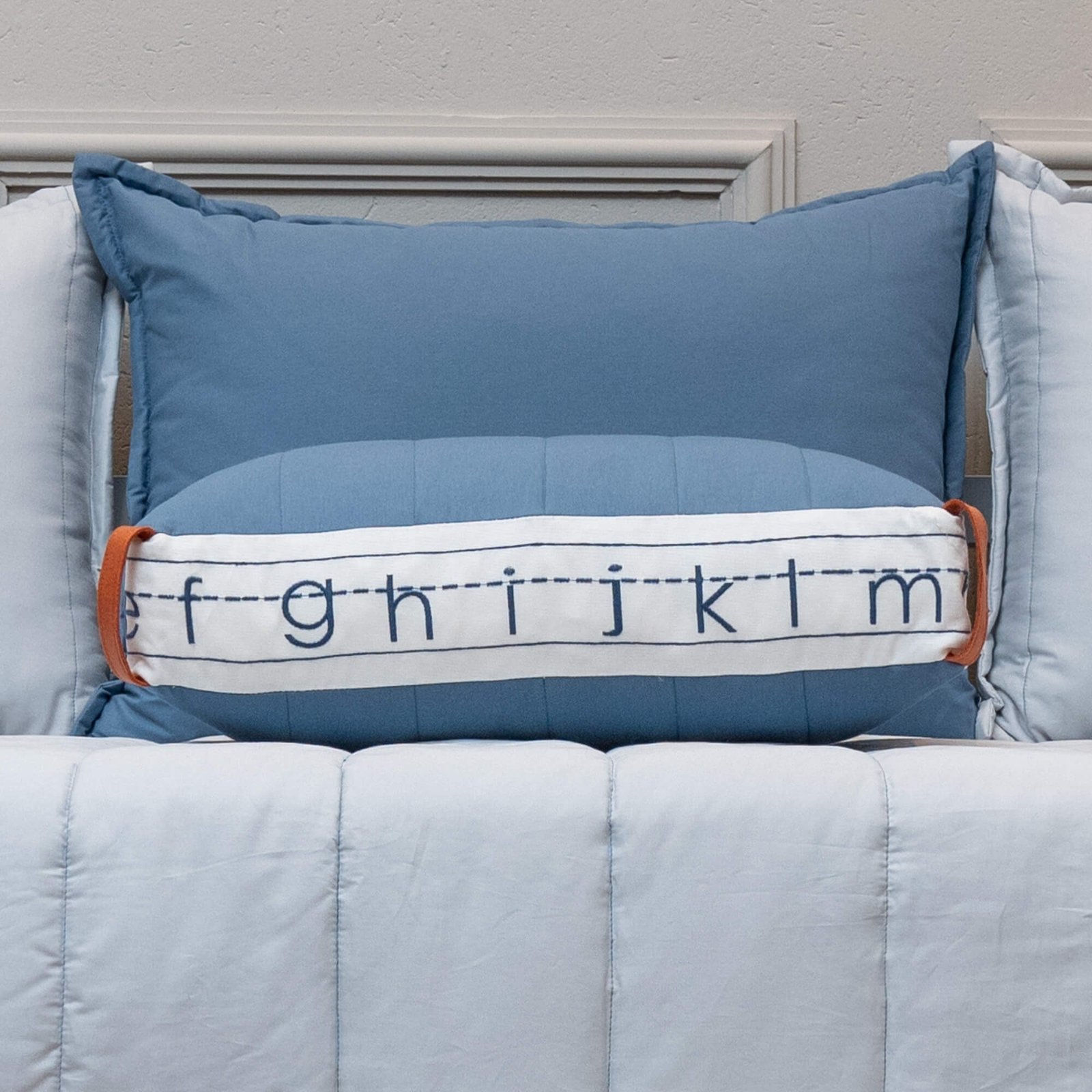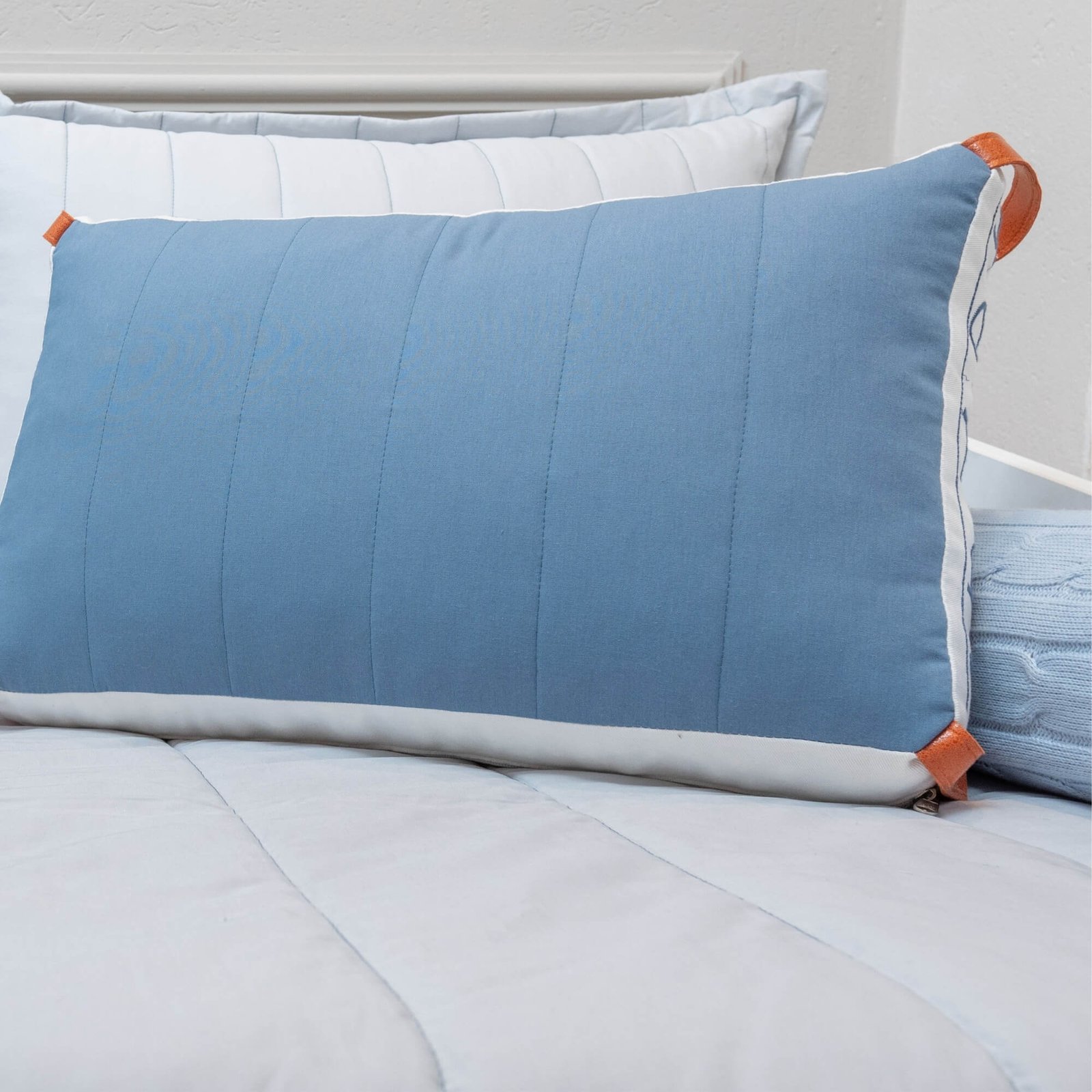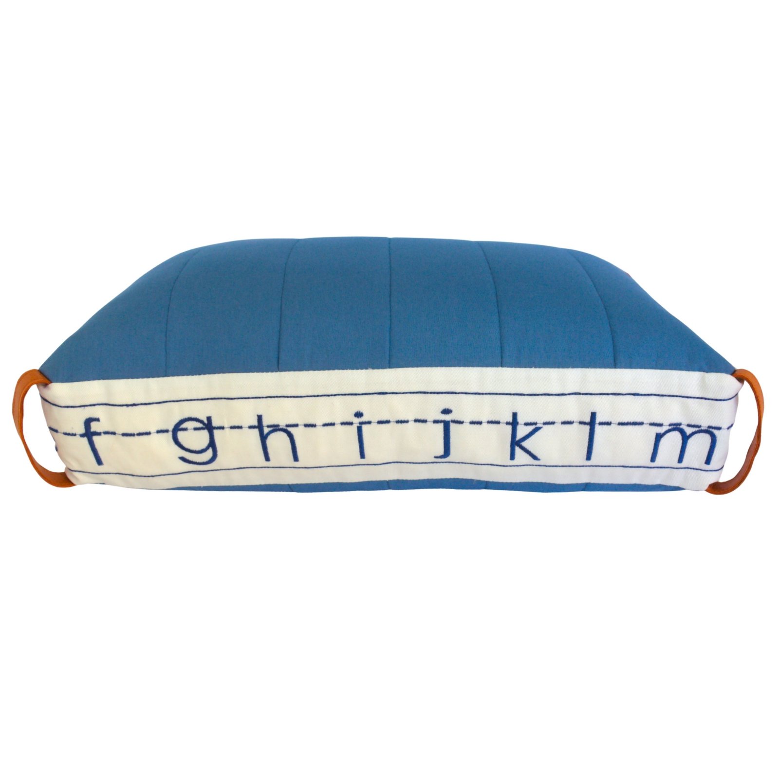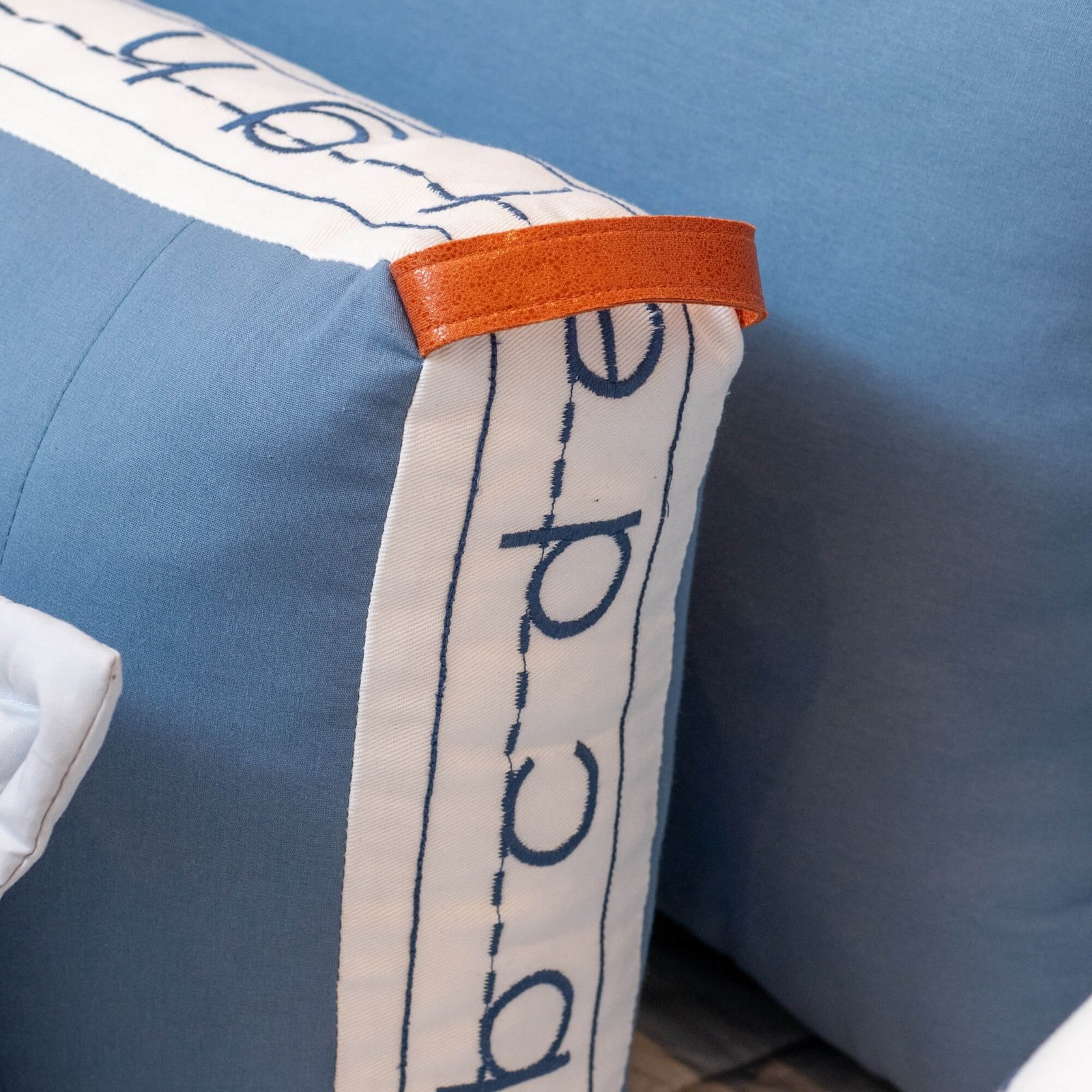 - 01 Almofada modelo caixa bordada alfabeto em algodão matelassado e alça de courino nas pontas – 50cm x 30cm