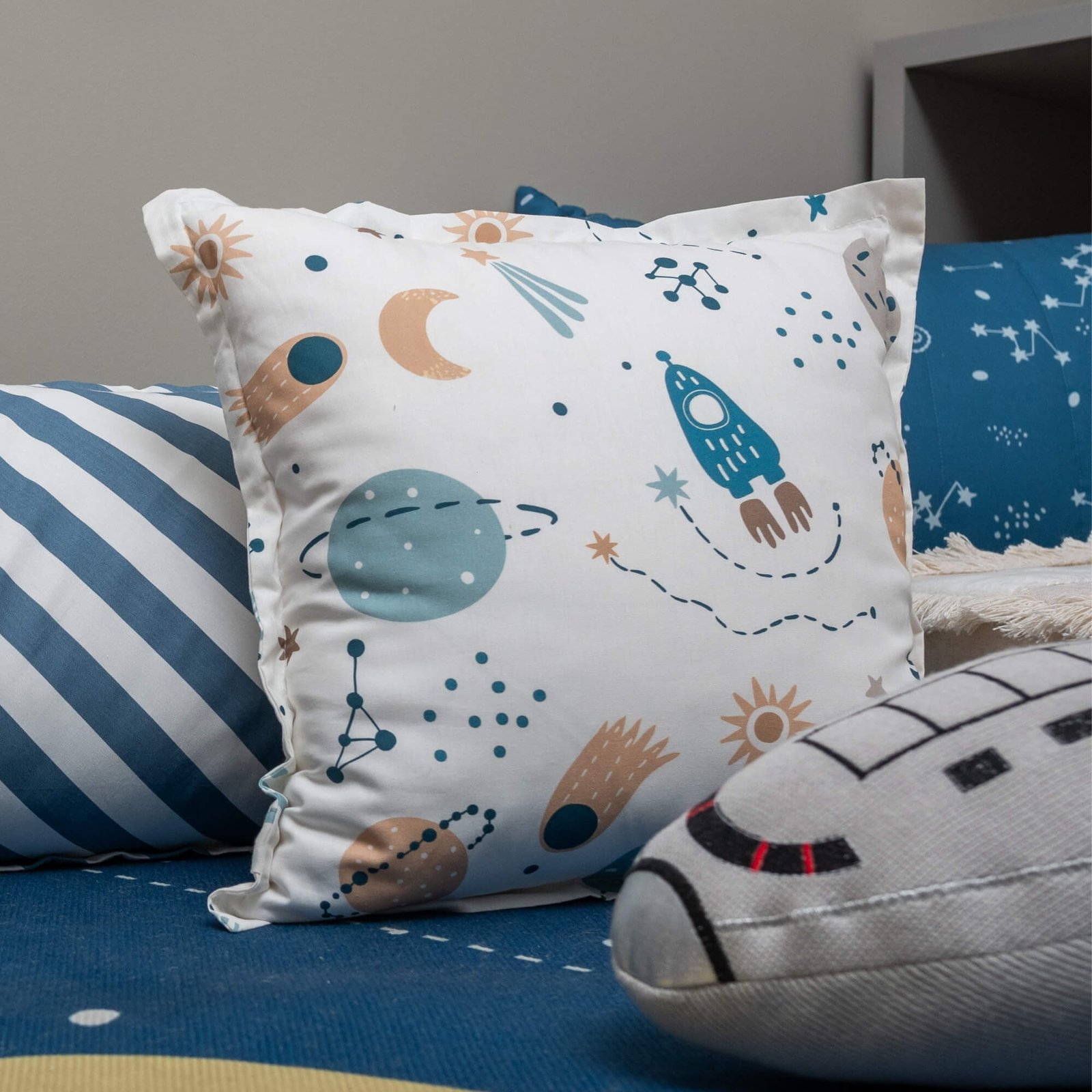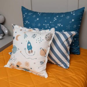 • 01 Almofada em tricoline com estampa exclusiva de planetas – 40cm x 40cm
