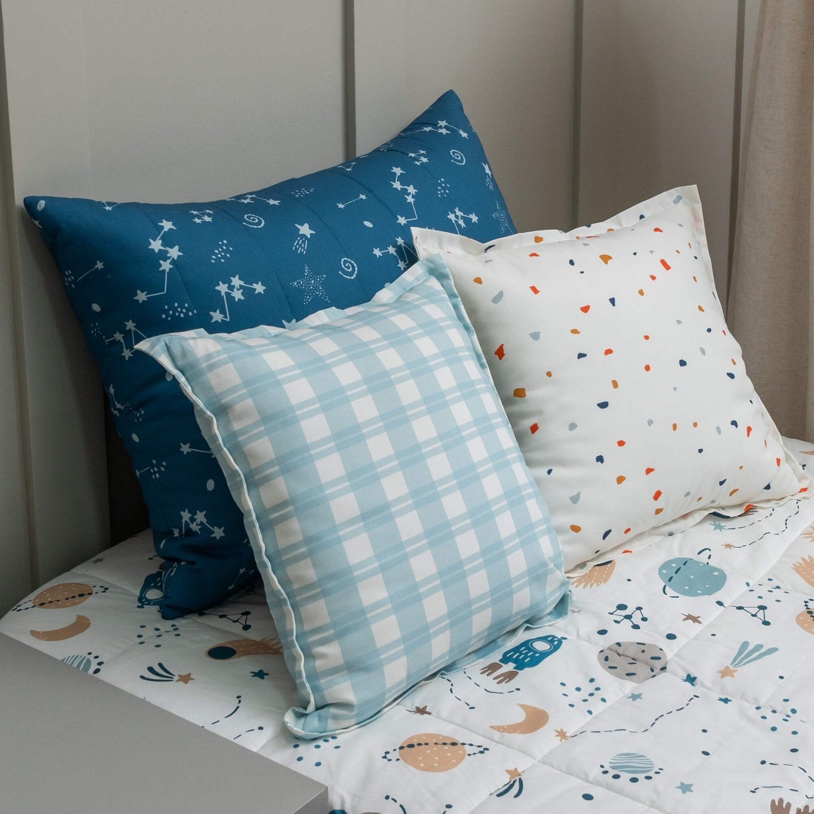 Quando você vê um quarto de bebê impecável, pode notar, são os detalhes que o tornam único. Mães que buscam esse nível de elegância sabem que uma almofada decorativa de design exclusivo é indispensável. A Almofada em Algodão Estampado Xadrez Azul da coleção Space é essa peça. Seu valor está na capacidade de adicionar textura, cor e afeto, criando aquele cenário acolhedor e sofisticado que todo mundo admira.