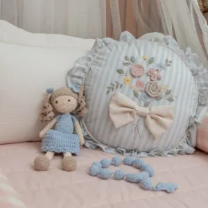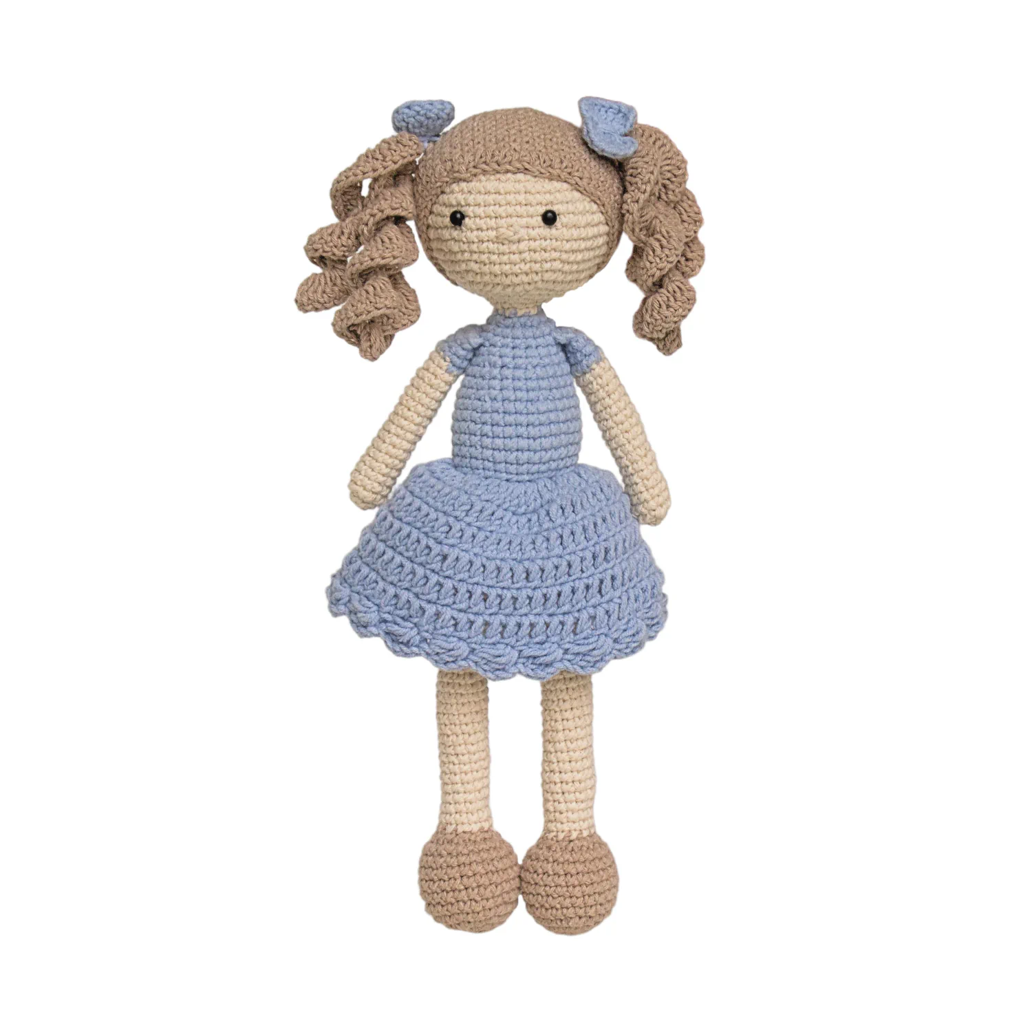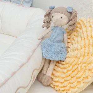 - 01 Boneca decorativa em amigurumi com vestido azul e maria chiquinha – 27cm