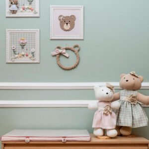 Transforme o vazio em arte. Nossa Decoração de Parede é o toque de alma que define a atmosfera do quarto. Mais que um enfeite, é uma assinatura de estilo que completa a narrativa da decoração. Feita com o padrão de qualidade Biah Baby, ela adiciona profundidade e charme, provando que o cuidado com os detalhes está em todos os ângulos.