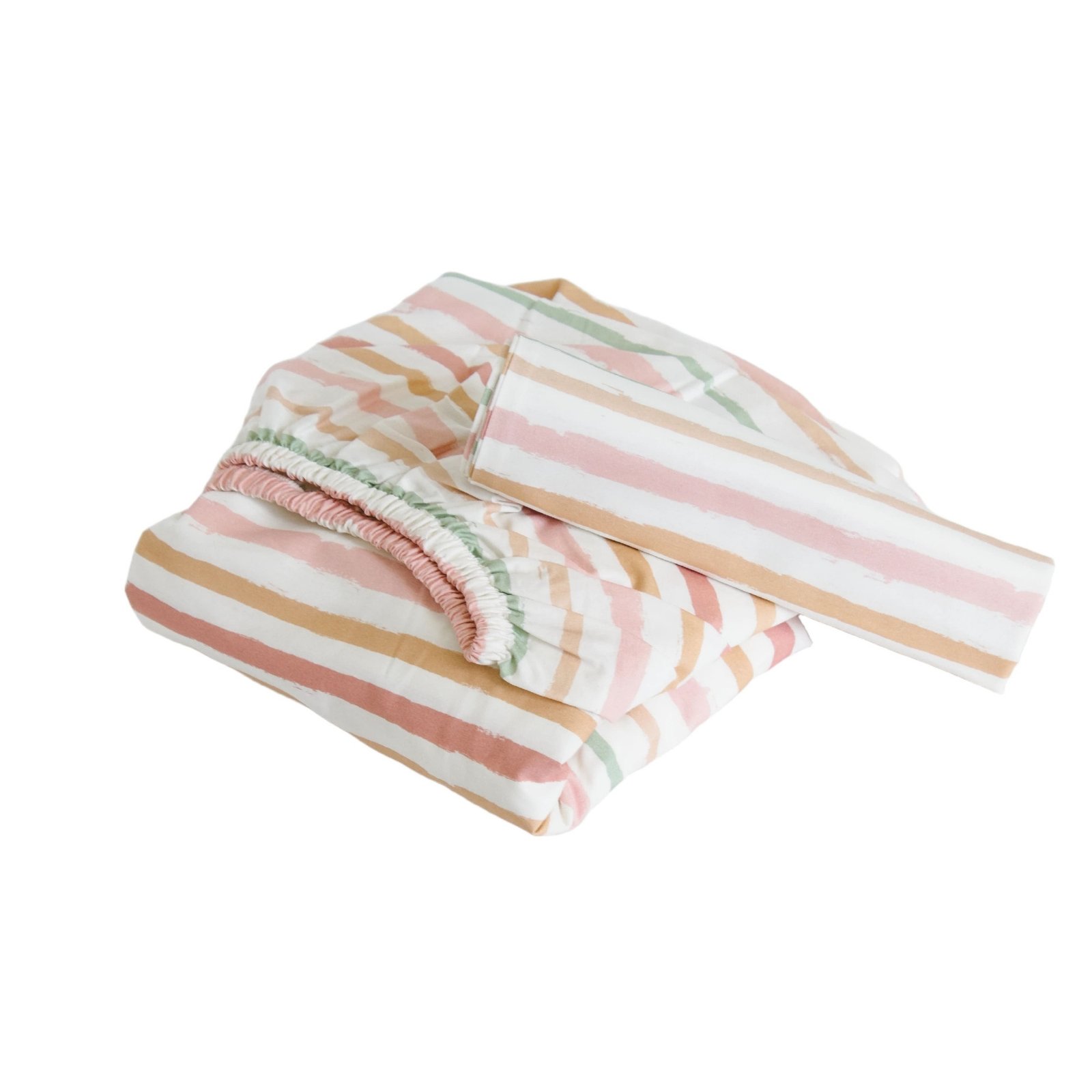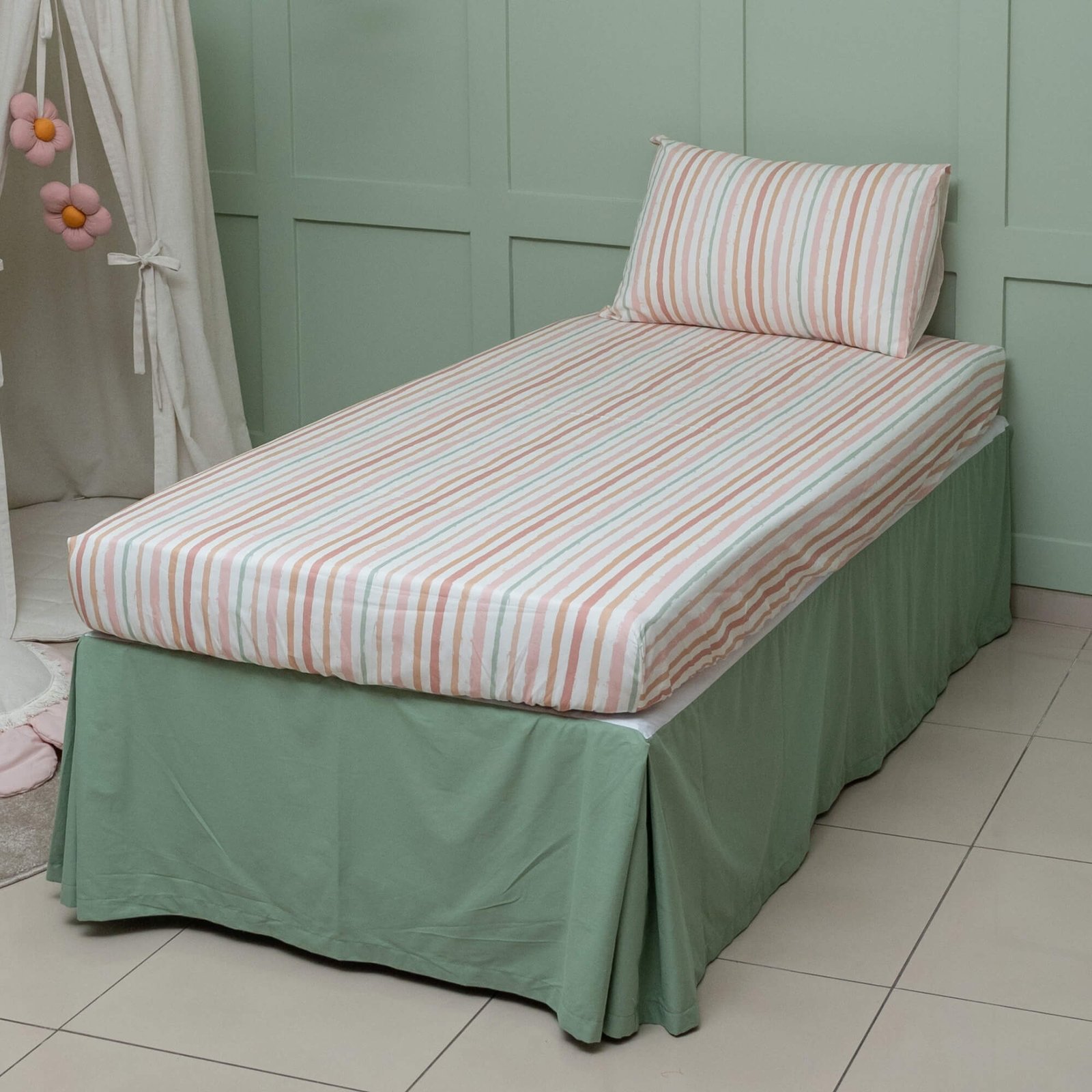 - 01 Lençol de elástico para cama de solteiro em tricoline com estampa exclusiva de listras – 1,88m x 88cm x 20cm