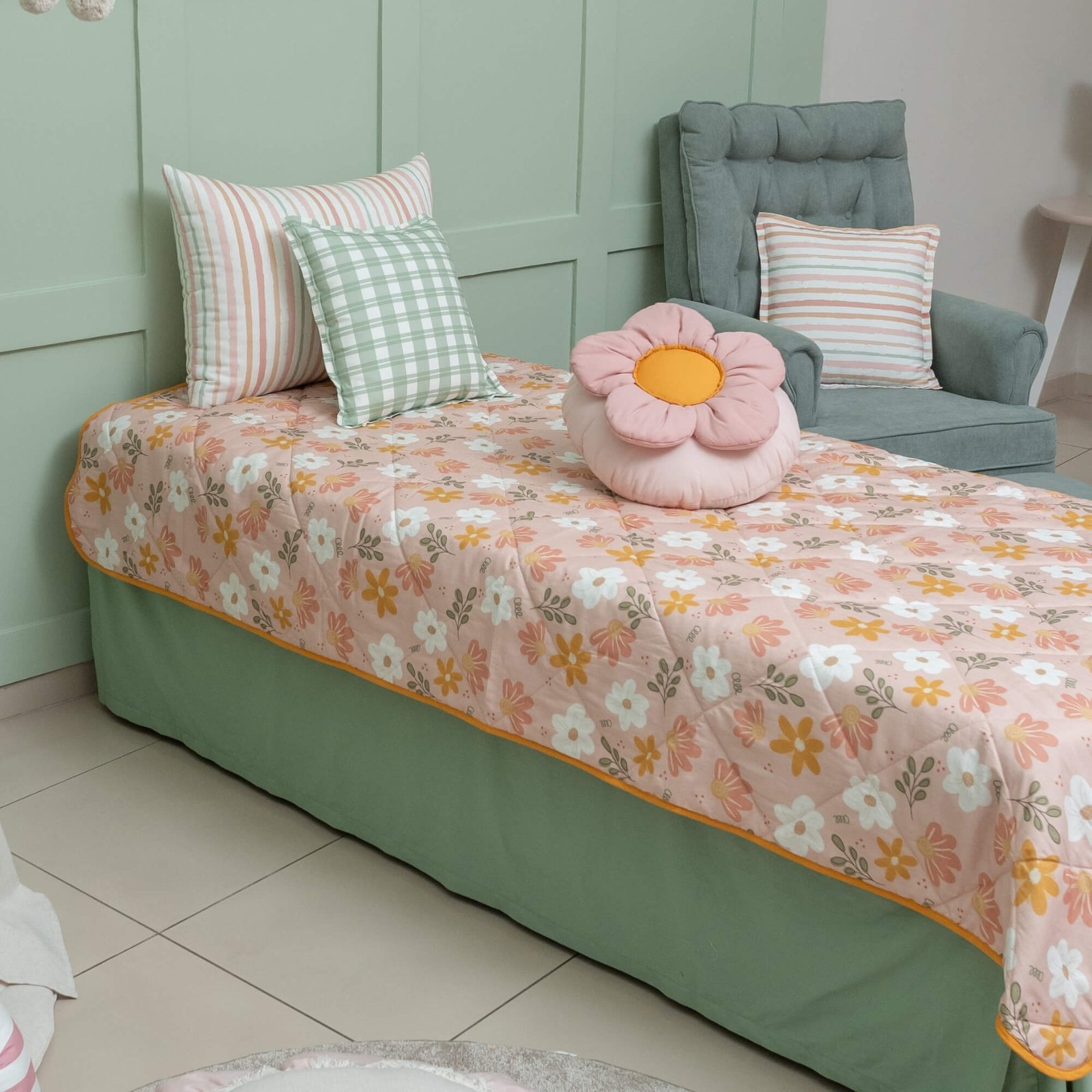 - 01 Edredom dupla face em tricoline com estampa exclusiva de floral e verso na cor mostarda – 2,15m x 1,48m