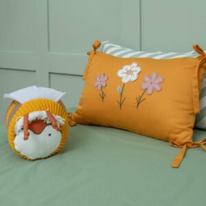 A almofada formato abelha possui enchimento fixo e deve ser lavada inteira