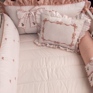 Design Autoral e Sofisticação: Cada coleção é uma criação exclusiva Biah Baby. Nossos designs são atemporais e sofisticados, pensados para compor um ambiente de elegância única. Os acabamentos refinados, das costuras aos bordados, são um reflexo do seu cuidado em cada detalhe.