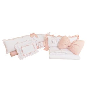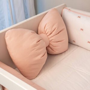 • 01 Peseira formato laço em tricoline rosa – 50cm x 30cm