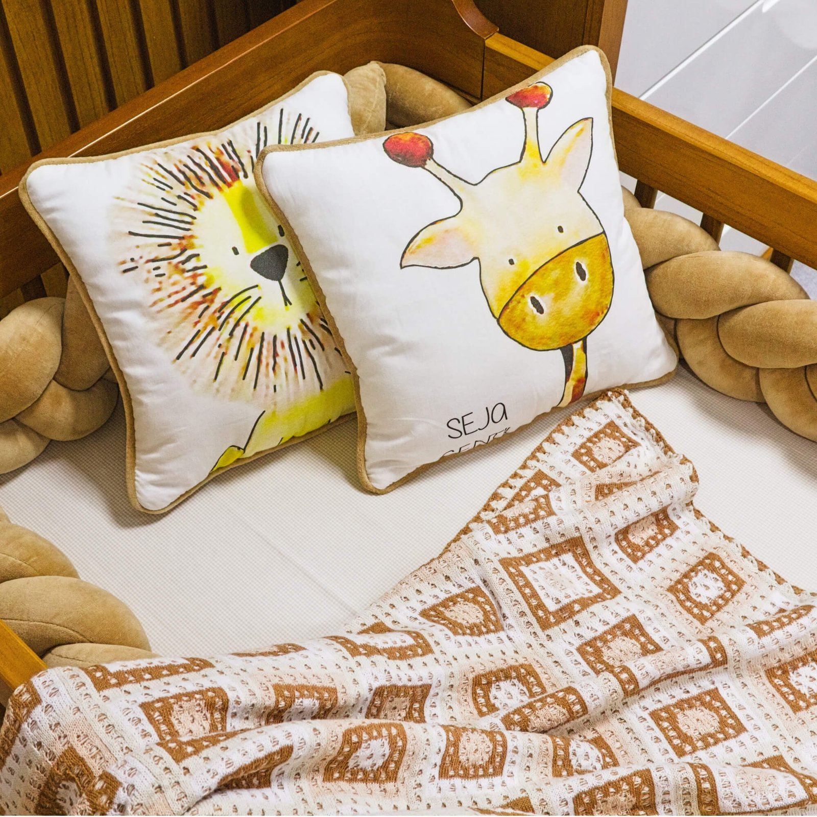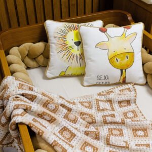 - 01 Almofada decorativa em algodão estampado girafa – 33cm x 33cm