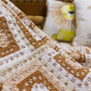 - 01 Manta em tricot geo cobre com acabamento em crochê – 80cm x 80cm