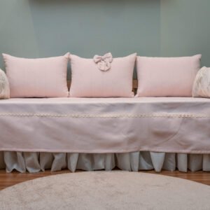 - 01 Cobre leito para cama em jacquard rosa com detalhe de sianinha e bordado – 2,4m x 1,40m