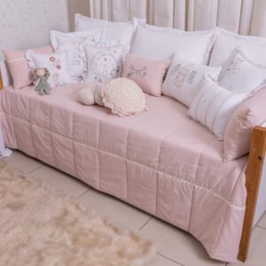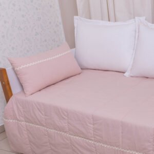 - 01 Edredom de cama matelassado em percal rosa 200 fios com detalhe de sianinha – 1,5m x 2,3m