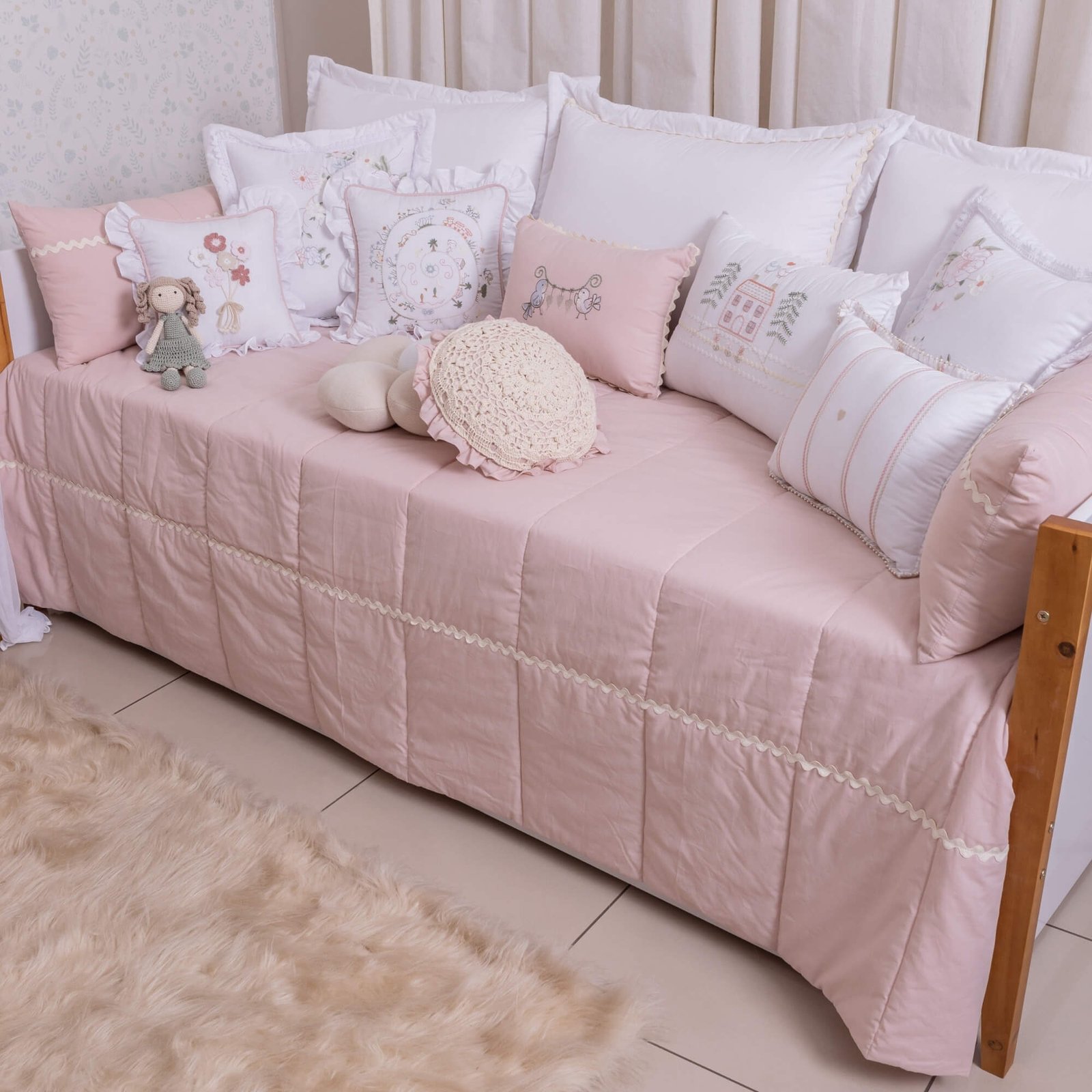 - 01 Edredom de cama matelassado em percal rosa 200 fios com detalhe de sianinha – 1,5m x 2,3m