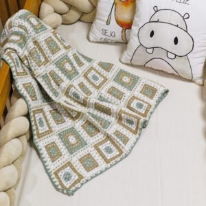 - 01 Manta em tricot geo verde com acabamento em crochê – 80cm x 80cm