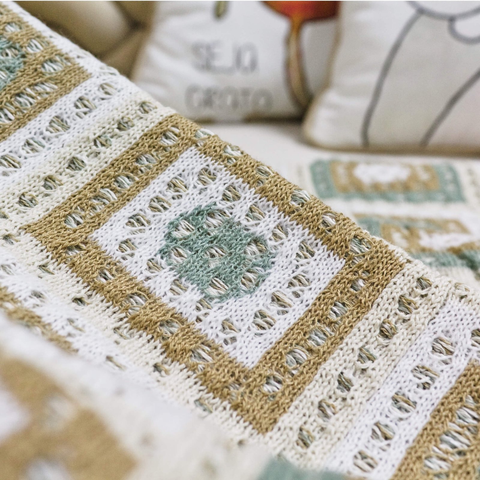 - 01 Manta em tricot geo verde com acabamento em crochê – 80cm x 80cm