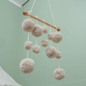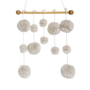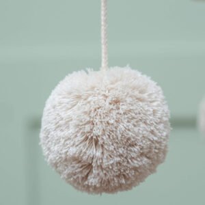 - 01 Móbile decorativo de teto com pompons de linha bege – 30cm x 26cm / 1,1m total com cordão