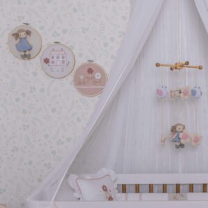 Um quarto de luxo é definido pelos seus pontos focais. O Quadro Decorativo Bastidor Boneca em Amigurumi da coleção Meninice foi criado para ser esse destaque, trazendo elegância e aconchego para as paredes. Seu valor está na capacidade de completar o tema do enxoval e adicionar uma camada de design exclusivo, transformando o ambiente em um verdadeiro refúgio.