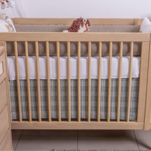 Assim como uma peça de alta-costura, o enxoval de luxo exige um caimento perfeito. A Saia é esse acabamento essencial, criada para dar peso, fluidez e elegância ao móvel. É a assinatura Biah Baby que completa a composição e eleva todo o conjunto, garantindo um visual coeso e sofisticado digno de um quarto de revista.