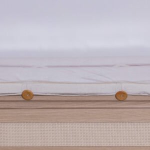 • 01 Trocador reto em linho com detalhe em courino e botões de madeira – 67cm x 47cm x 3cm