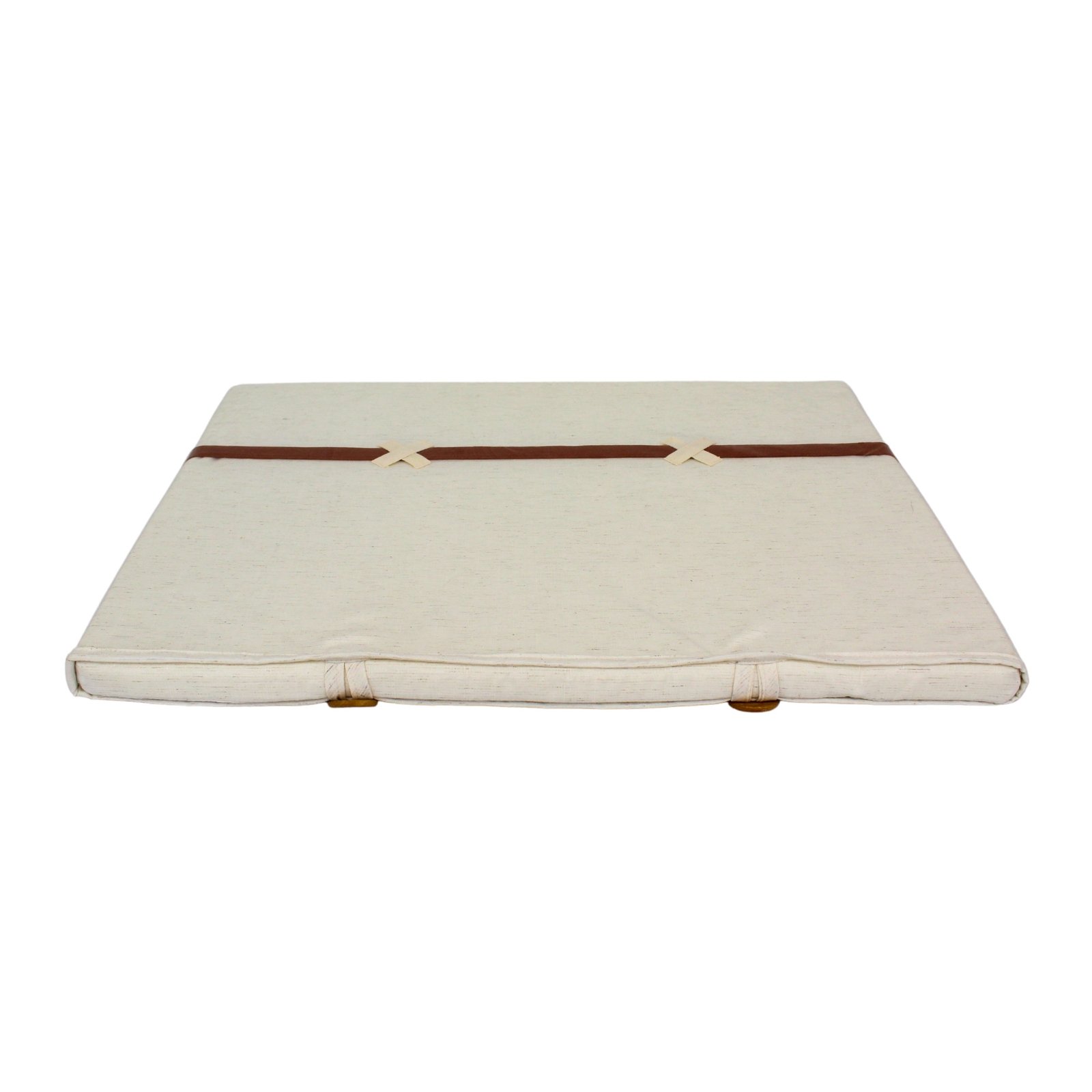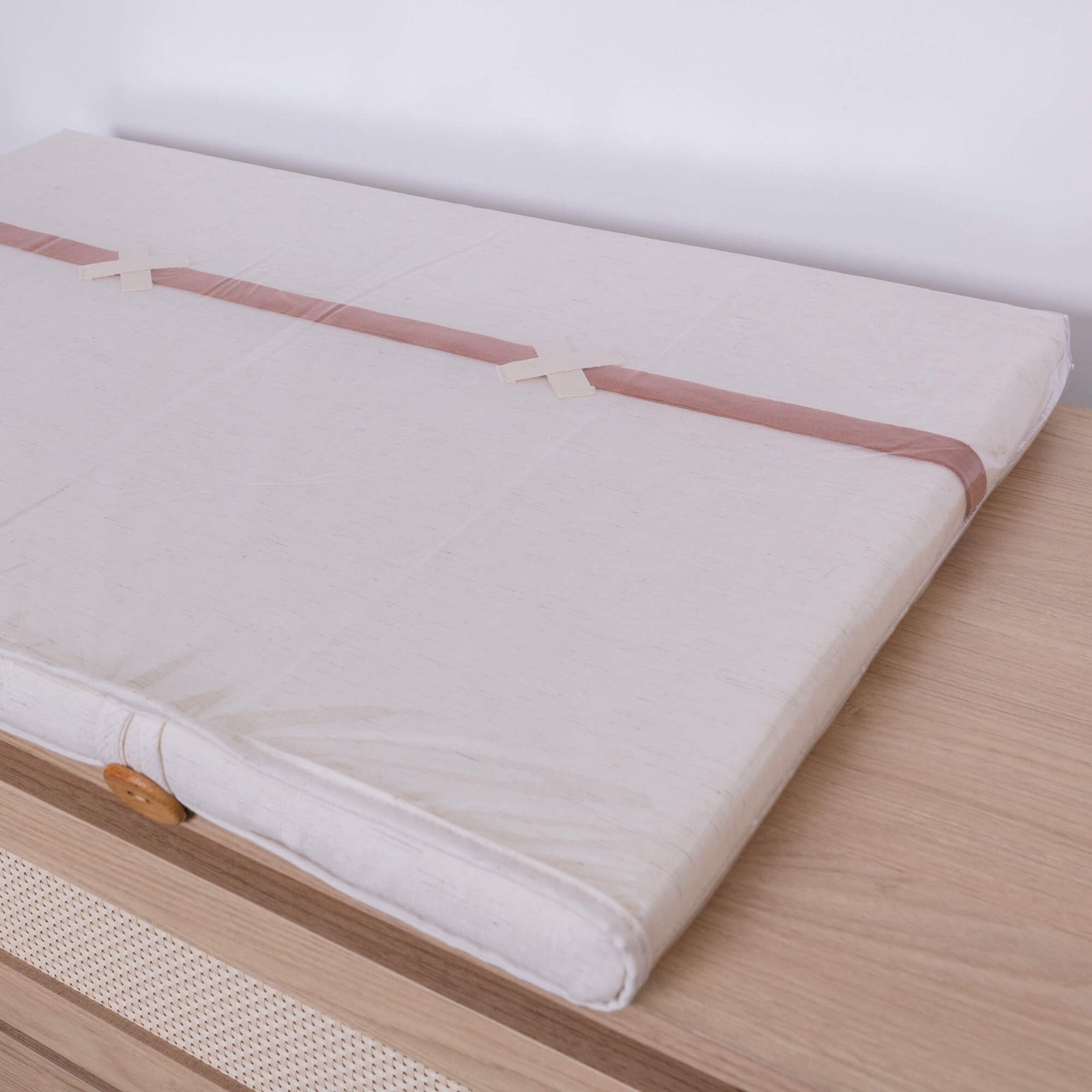 • 01 Trocador reto em linho com detalhe em courino e botões de madeira – 67cm x 47cm x 3cm