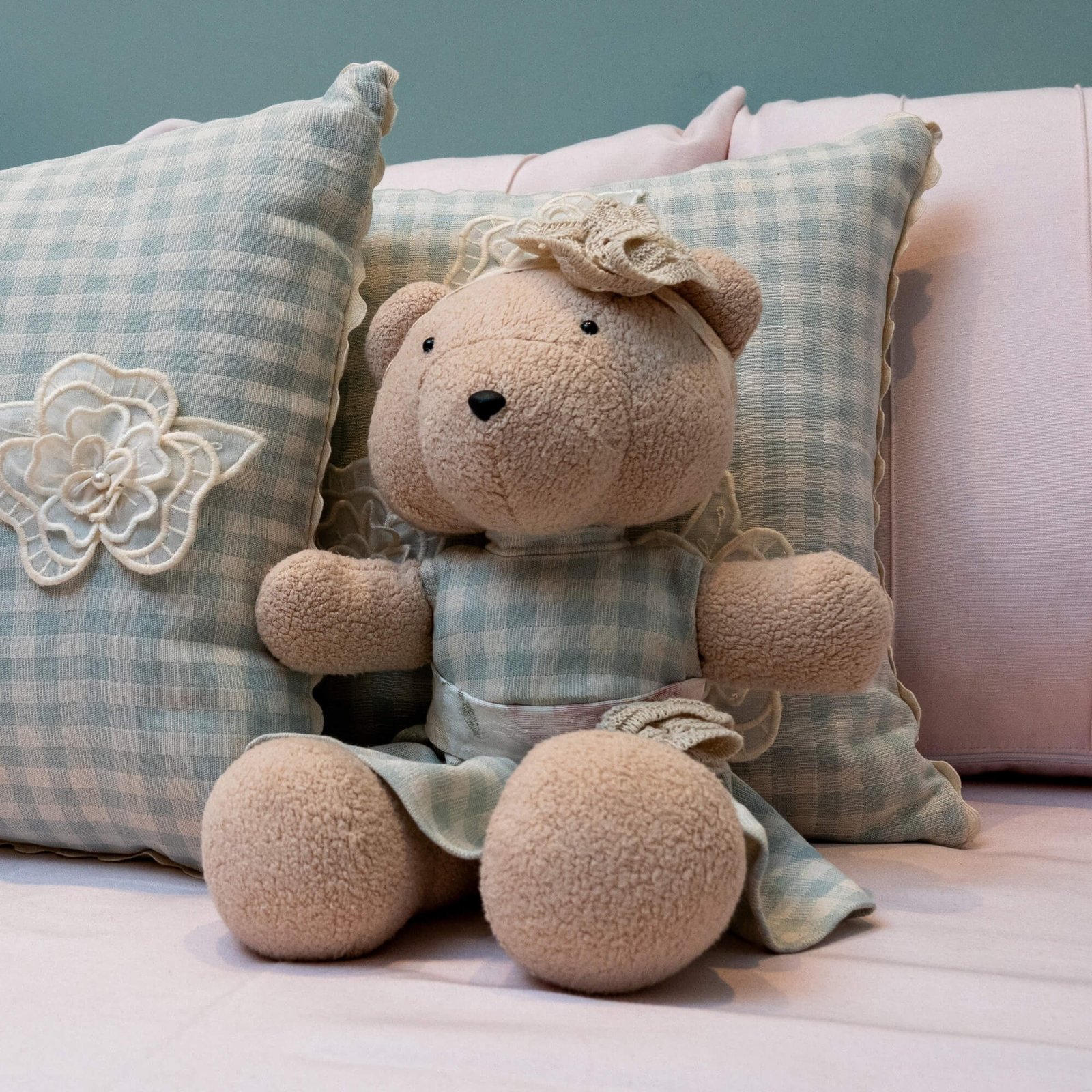 Ursa de Nicho com Vestido Xadrez de Verde Mel