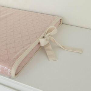 - 01 Trocador reto em tricot losango rosa una com detalhe de laço – 67cm x 47cm x 3cm