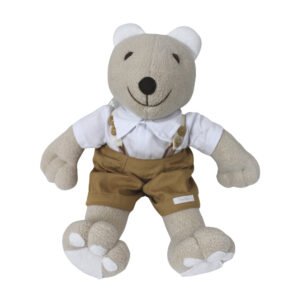 - 01 Urso de nicho com suspensório, possui bermuda em linhão – 45cm x 37cm
