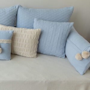 - 01 Almofada em tricot trança azul salina – 40cm x 40cm